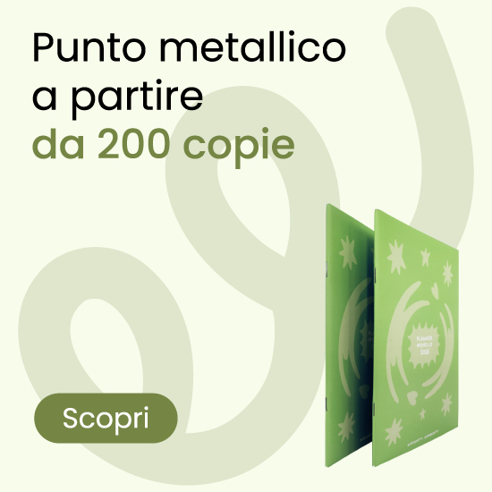 Perfetta per romanzi, saggi, tesi, bilanci o cataloghi: la soluzione più scelta per libri destinati alla vendita o alla presentazione ufficiale. Seleziona la carta e le copie che valorizzano al meglio il tuo progetto Stampa a partire da: una sola copia a quante ne desideri scegliendo tra: Usomano avorio da 70 g Usomano bianca da 80 g Patinata opaca da 115/135 g Da 100 copie scegliendo tra: Usomano avorio da 52/60/80/90 g Usomano bianca da 70/90/100 g Patinata opaca da 70/80/90 g Da 250 copie scegliendo tra: Usomano avorio da 70 g Usomano bianca da 80/120 g Patinata opaca da 115/135 g COPERTINA a partire da 250 copie Finiture e nobilitazioni: Goffratura Telata Plastificazione Soft Touch Vernice selettiva Vernice selettiva spessorata 3D Lamina oro Lamina argento SOVRACCOPERTA a partire da 250 copie Finiture e nobilitazioni: Carta patinata opaca 170 g Stampa a colori/bianco e nero Plastificazione: Lucida o opaca Vernice selettiva Vernice selettiva spessorata 3D Lamina oro Lamina argento Cellofanatura: Singola o multipla in pacchi da 5 copie.
